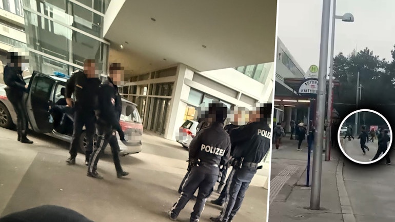 Brojne snage bezbednosti, uključujući službenike policijske stanice Rudolf-Nurejew-Promenade i jedinicu sa službenim psima, odmah su krenule u poteru. Osumnjičeni je pokušao da izbegne hapšenje trčeći preko stanice podzemne železnice U1 Kagran. Video snimak jednog čitaoca-reportera zabeležio je poteru koja se, međutim, naglo završila već na trgu Dr.-Adolf-Schärf-Platz. Policajci su uspeli da presretnu i uhapse maloletnika nakon samo nekoliko metara.