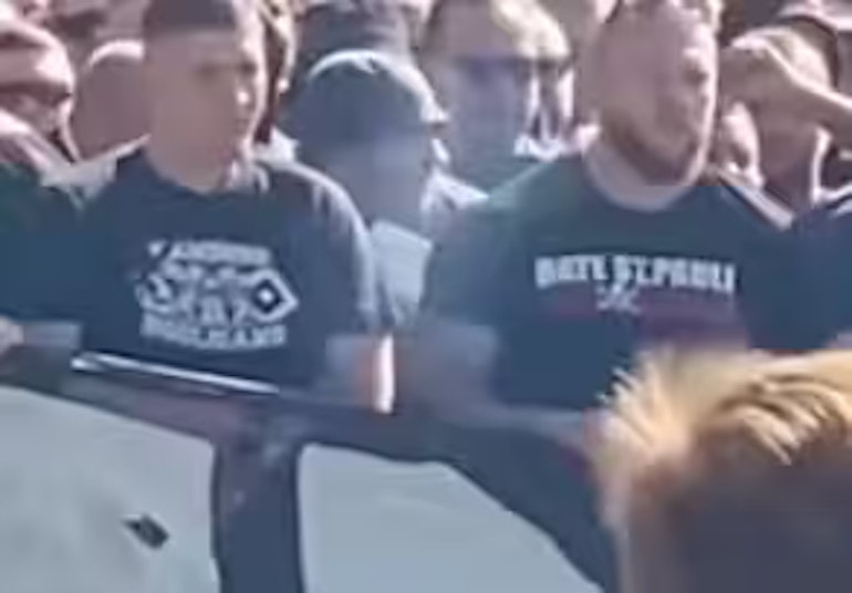 Ono što se na internetu predstavlja kao politički skup, u stvarnosti je navijački marš fudbalskog kluba Hamburger SV (HSV). Video je nastao 29. avgusta povodom gradskog derbija protiv lokalnog rivala FC St. Pauli. Prepoznatljivi natpisi poput „Hamburg“ i „Polizei Kommunikationsteam“, kao i okruženje u ulici Max-Brauer-Allee, potvrđuju kontekst. Parola koju je masa uzvikivala nisu politički slogani, već navijačka pesma protiv suparničkog tima.