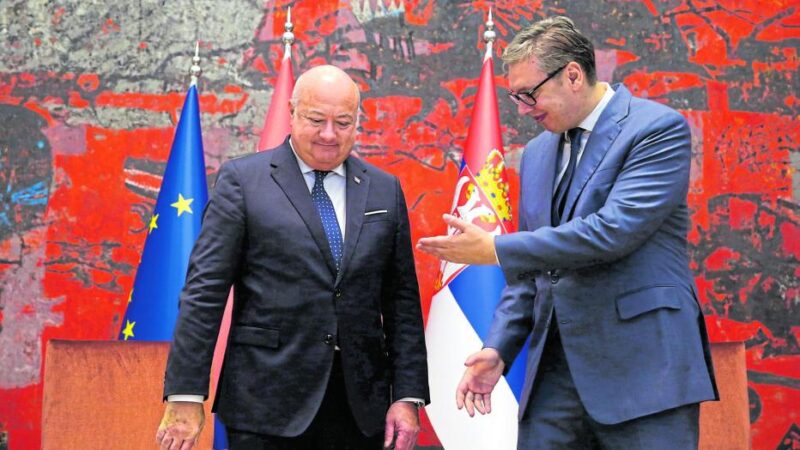 Austrijski savezni kancelar Christian Stocker boravio je u sredu u Beogradu, gde se sastao sa predsednikom Aleksandrom Vučićem. Poseta se dešava u osetljivom trenutku, pošto u Srbiji već devet meseci traju najmasovniji protesti u istoriji zemlje. Uprkos tome, tema evropskih integracija i dalje je visoko na agendi. Posle svečanog dočeka uz zastave u Beogradu, dvojica zvaničnika razgovarala su o perspektivi članstva u EU i produbljivanju ekonomske saradnje.